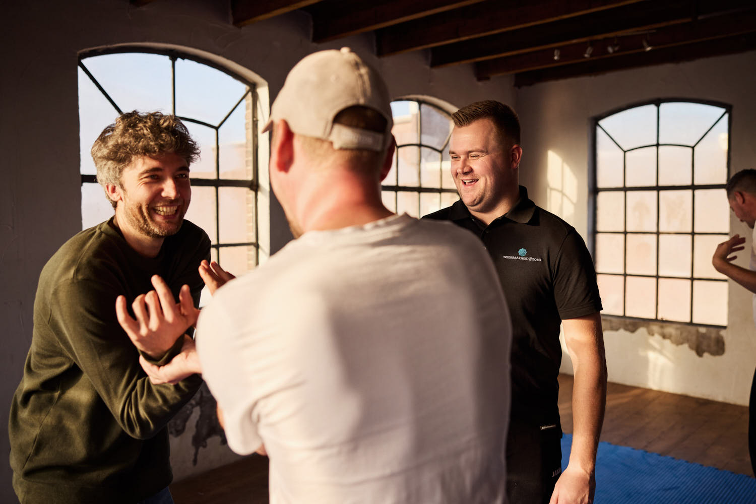 Onze training bestaat uit een combinatie van wetenschappelijk onderbouwde theorie met een hoop praktijksimulaties, fysieke werkvormen en reflectie.